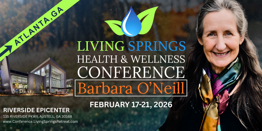 Join us at our Living Springs Health & Wellness Conference with Barbara O'Neill in Atlanta Georgia on February 17-21, 2026. The Venue is Riverside EpiCenter located at 135 Riverside Parkway, Austell, GA 30163.